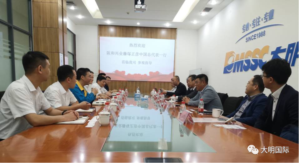 6月2日,阪和興業(yè)(上海)管理有限公司中國總代表藤塚正彥、董事長特別助理米原佳彥、阪和(大連)總經(jīng)理劉鐘男等領(lǐng)導(dǎo)率阪和上海、天津、大連團(tuán)隊(duì)一行7人來訪大明天津加工中心。大明天津加工中心總經(jīng)理于長江、副總經(jīng)理夏紅衛(wèi)、副總經(jīng)理張帆等熱情接待并座談交流。